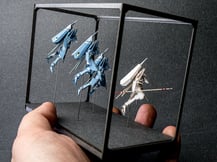 基本的には衛人隊セットと同様に、ちょっとしたスペースに飾れる精密ペーパークラフトといったコンセプトで制作したのですが、今回は組立てが複雑になり過ぎないように3Dプリンタの部品を組み合わせて制作しました。